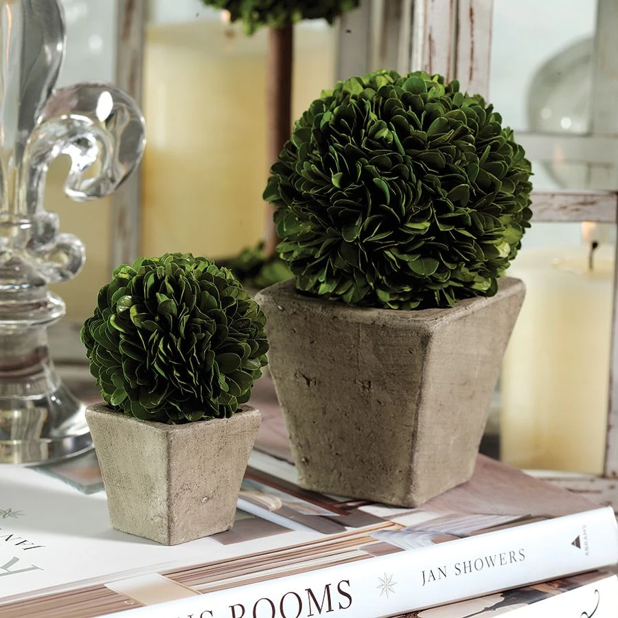 This boxwood ball topiary is made of genuine, preserved boxwood and comes in a natural finish square pot. We love using them indoors to add a natural touch to our space. Spray once a month with water to keep boxwood looking fresh, keep away from direct sunlight. Recommended for indoor use only.