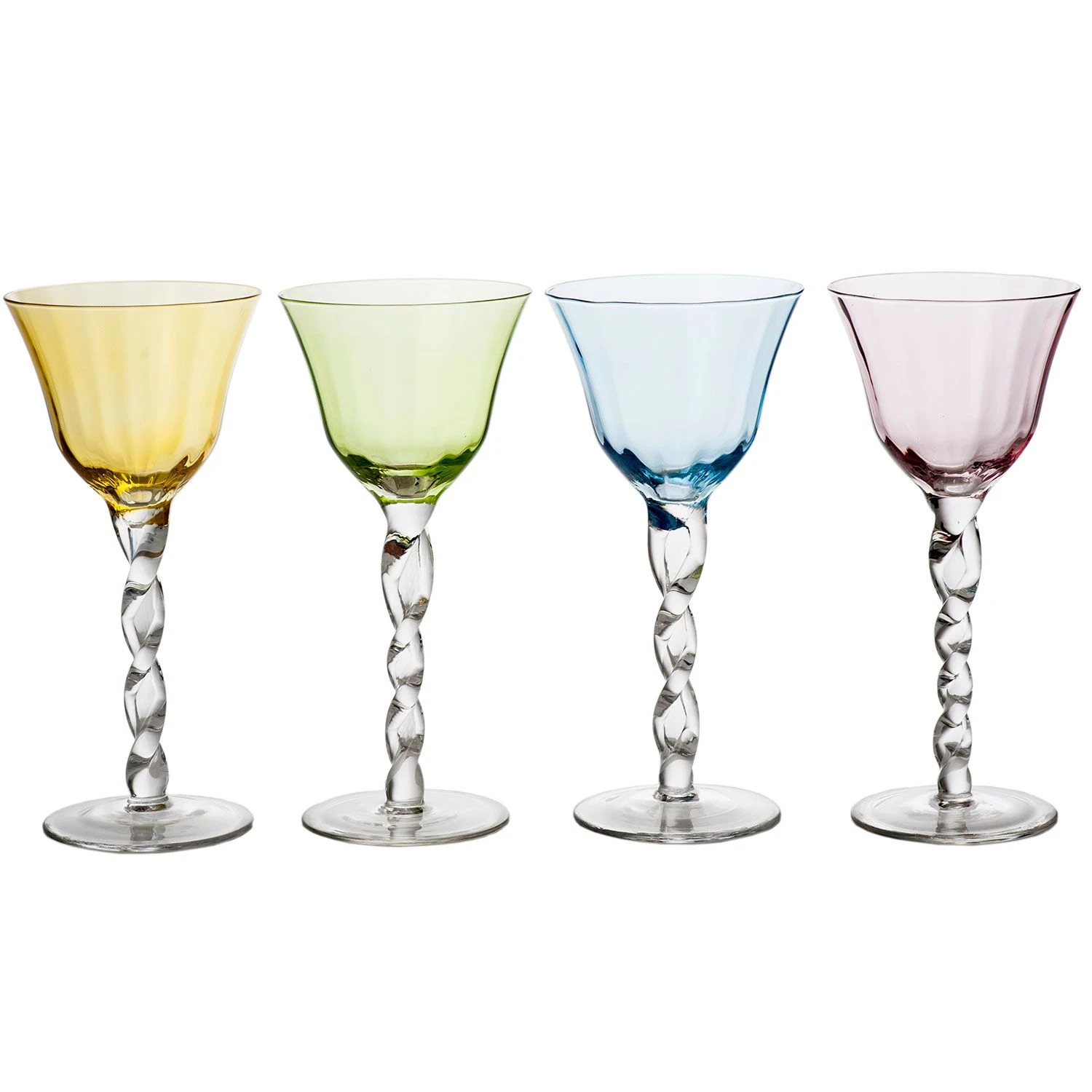 Classic Abigails exclusive glass. Hand wash only. Sold in sets of 4. Available in Blue, Green, Yellow, and Pink.