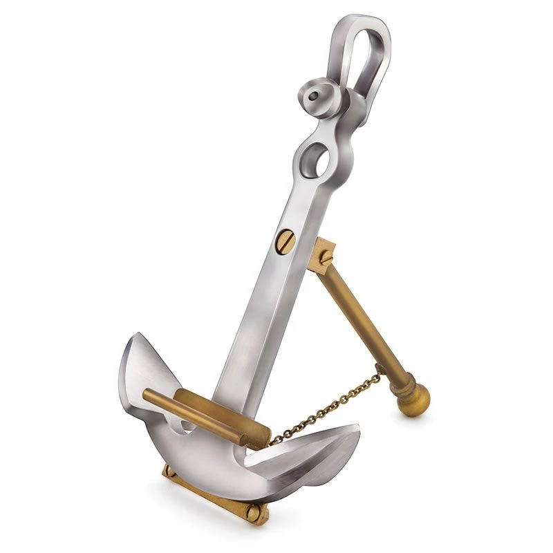 Patterned after the stockless anchors of 19th century whaling vessels, the Anchor Stand offers the ideal mooring point for your phone. The bold design of polished cast aluminum sends timidity to the water depths, while brass fittings support even the larger iPhone and Galaxy models. Folds flat for stowage below deck.