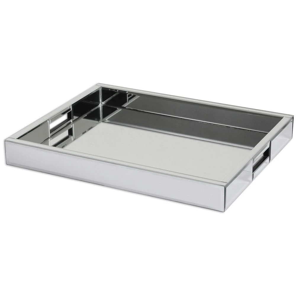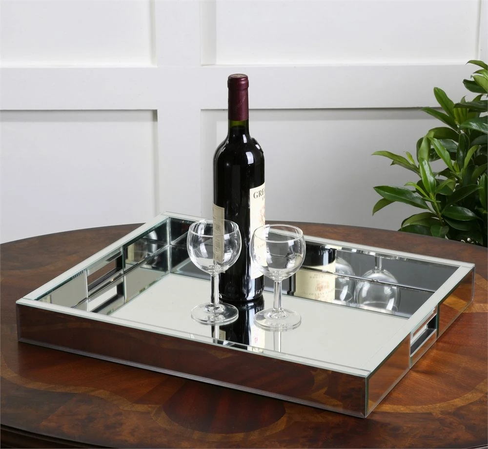 Decorative and functional tray constructed of multiple mirrors with polished edges for a smooth finish.