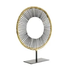 Crafted By Hand, Simple Geometrics Intermingle To Form This Unique, Interlocking Wood Sculpture. An Ebony Finish Boldly Highlights The Natural Wood Grain, Establishing A Rustic Quality That Parallels With Its Modern Form. A Visual Work Of Art For An Entryway Console Or An Étagère In Traditional And Modern Settings.