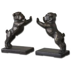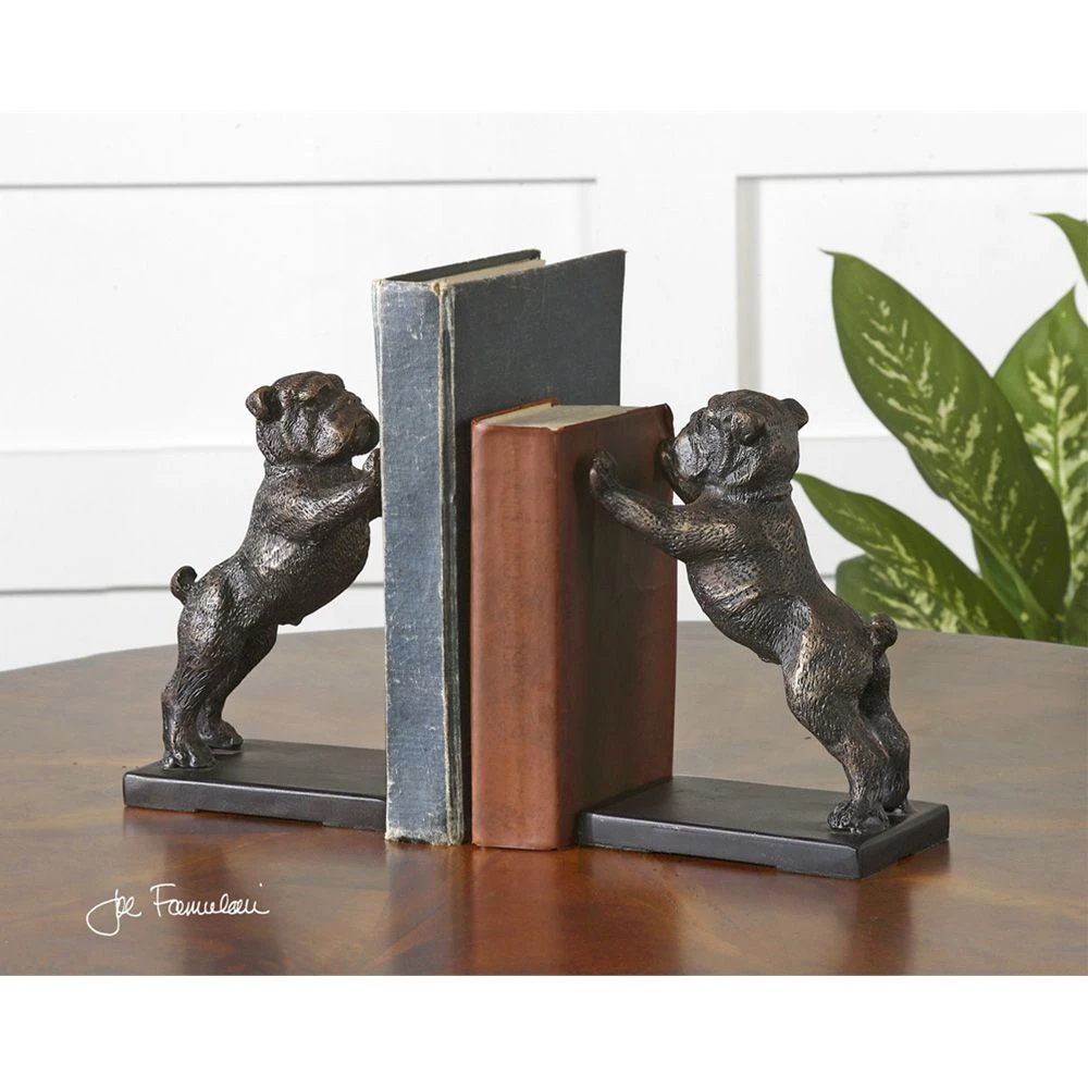 These adorable bookends are made of cast iron and finished in heavily, distressed golden bronze with a dark gray glaze.