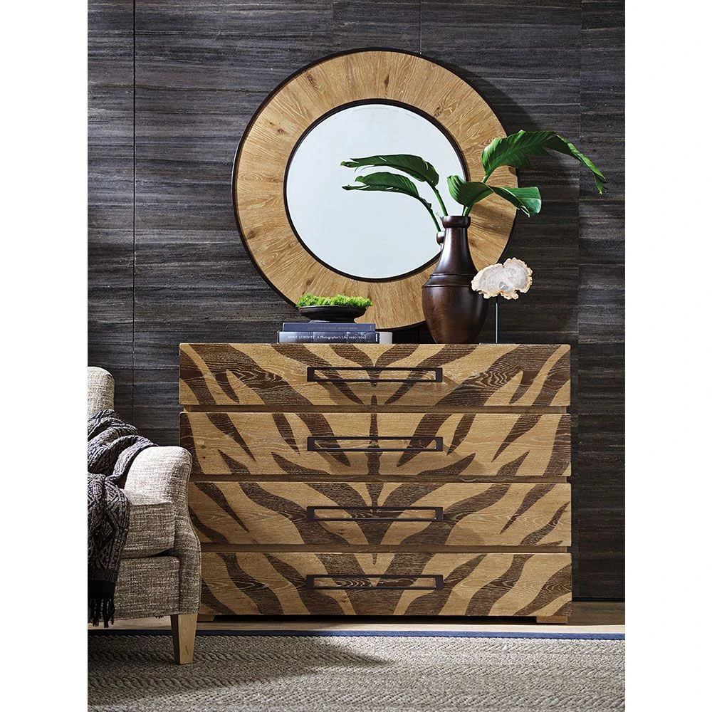 Los Altos Collection pieces are crafted from select Knotty Oak veneers that are gently wire-brushed to enhance the character of the grain, then finished in a semi-transparent natural oak stain and hand-rubbed with a linen-white finishing glaze. The styling conveys a sense of authenticity and casual sophistication. Accent materials include aged bronze metal, travertine, woven Abaca and banana leaf. Blending cultural and design influences from around the world offers a collector’s aesthetic that speaks to travel, exotic destinations and a life well-lived. The look is one of curated eclecticism, featuring unique designs, indigenous materials and custom finishes.