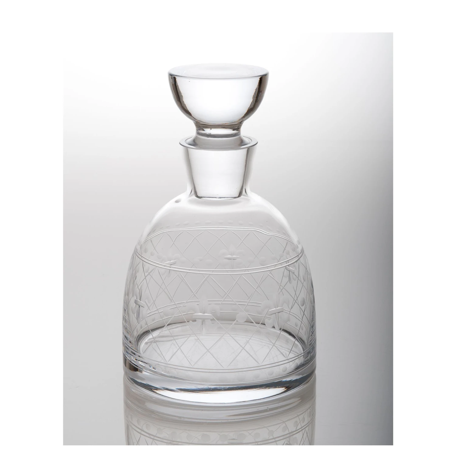 A special decanter in crystal with a sophisticated pattern hand cut around the base. An impressive gift item. Made in Poland.