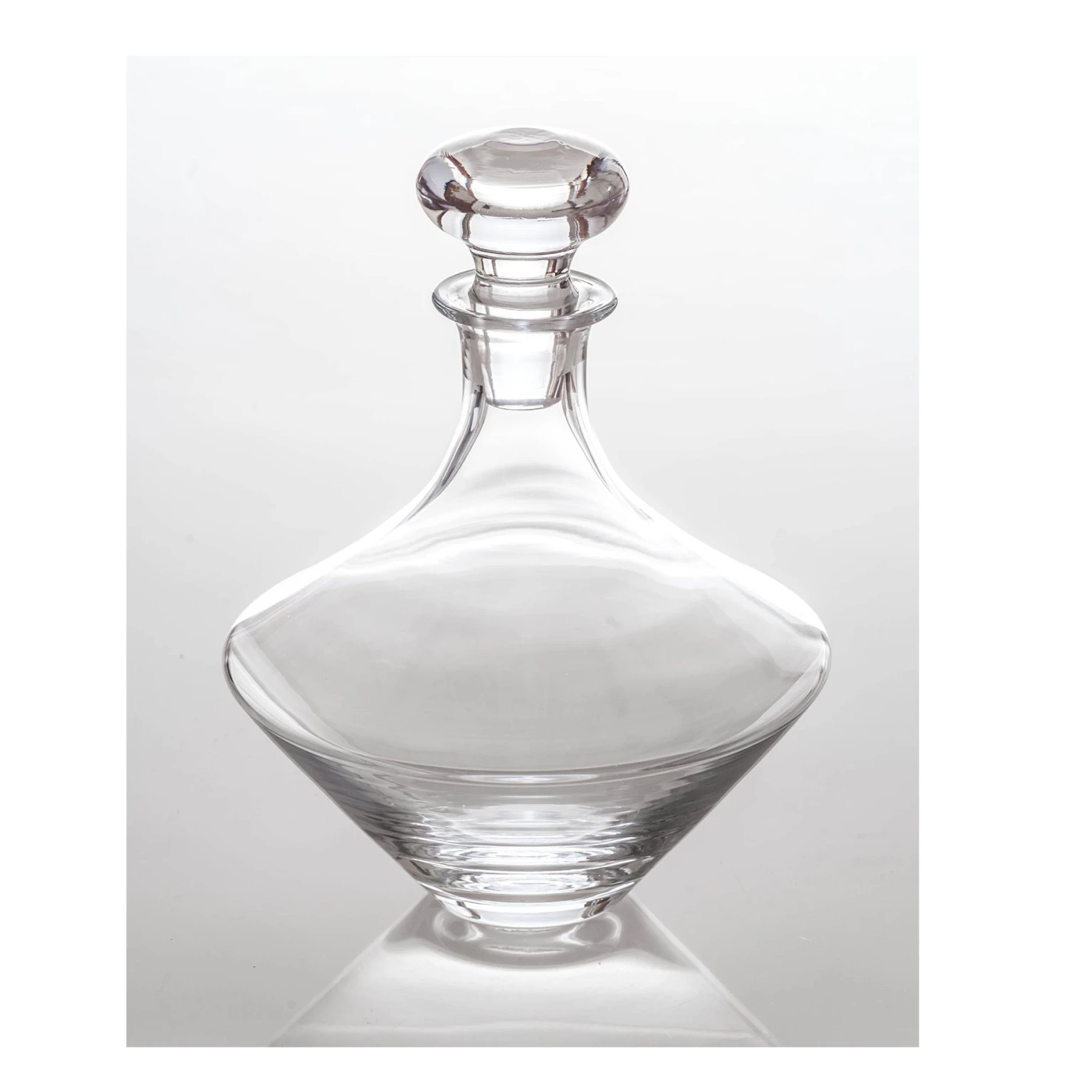 A lovely new addition to our line is this tear drop shaped decanter. It fits right into any contemporary setting. Lead free crystal.