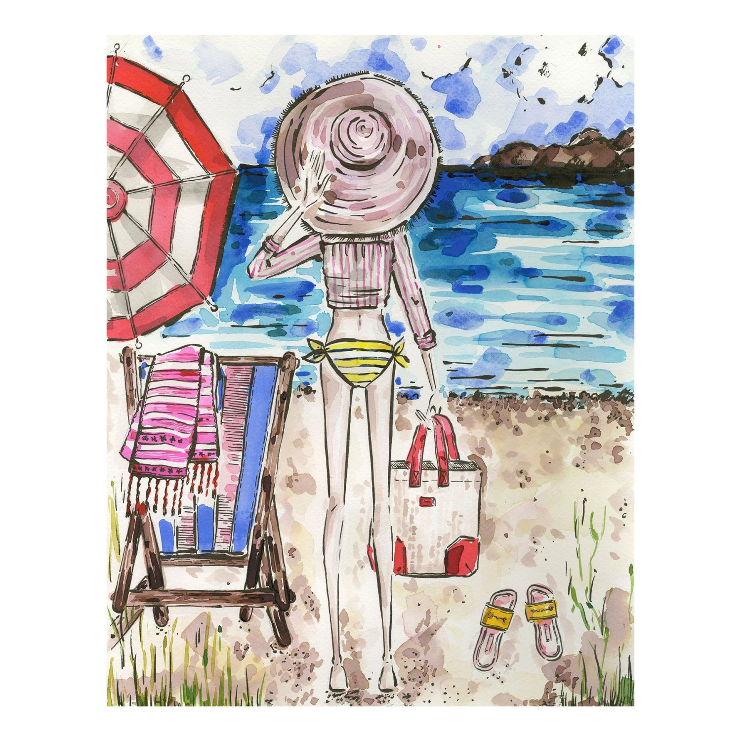 A sunny day at an East Hampton beach. This original watercolor is painted by artist and designer Ivy Kirk in Brooklyn, New York.