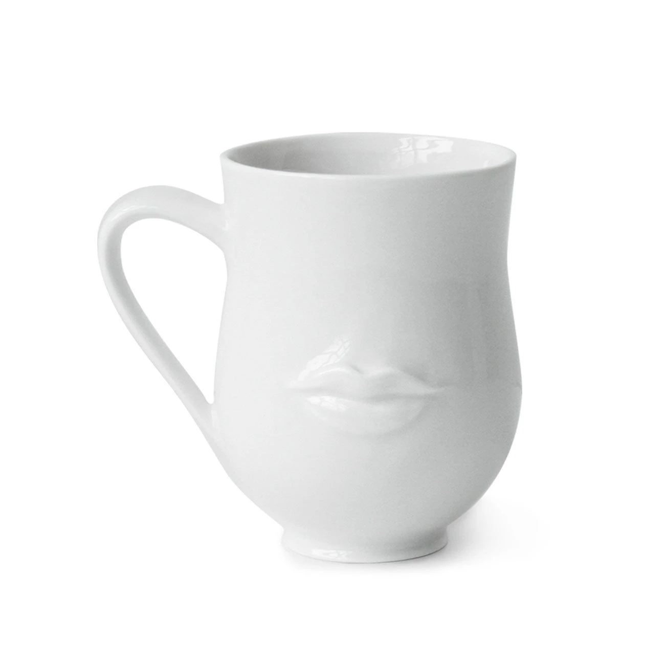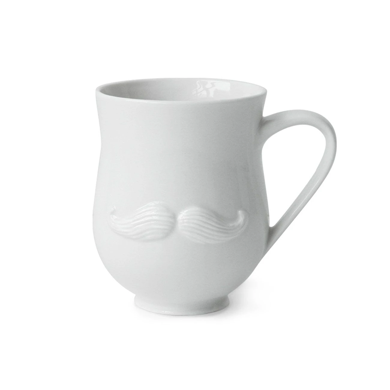 Single mug with mustache on one side, full lips on the other. Dishwasher safe.