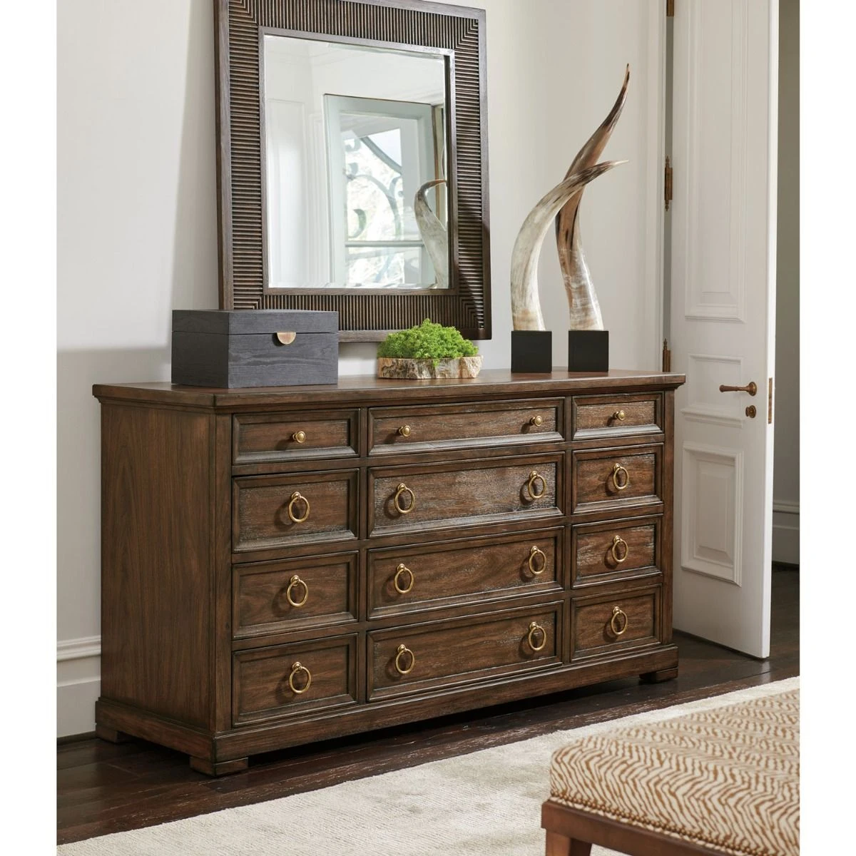 Silverado features classic styling that puts a current touch on traditional design. The collection is crafted from walnut veneers and mahogany solids in a rich walnut finish. Hand-wrought metal bases, in a maritime brass finish, reflect the work of an artisan’s hand, and select items hint of the exotic, with tiger-brown travertine tops.