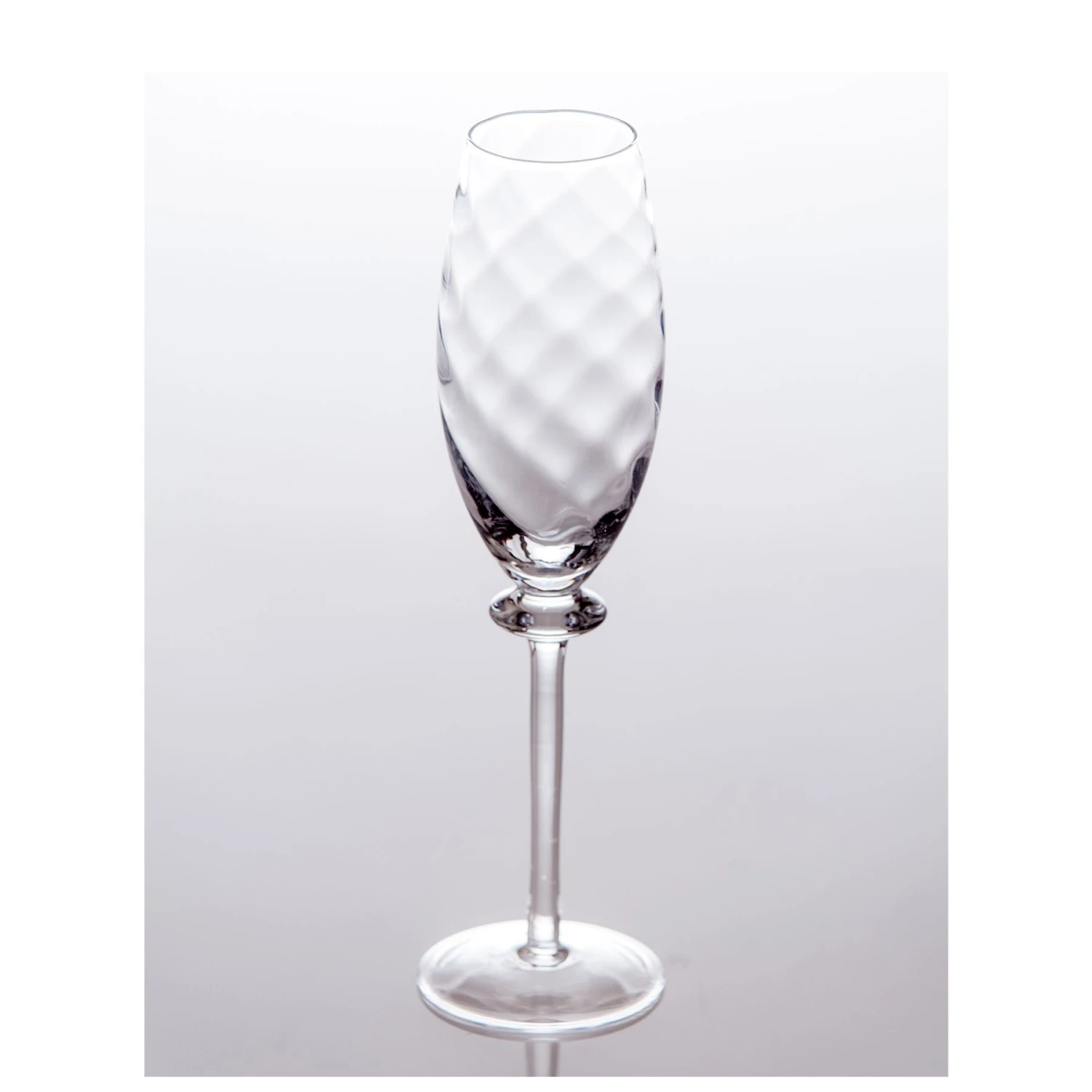 An elegant yet sturdy lovely glass flute with a subtle optic top. Champagne has never been so much fun.