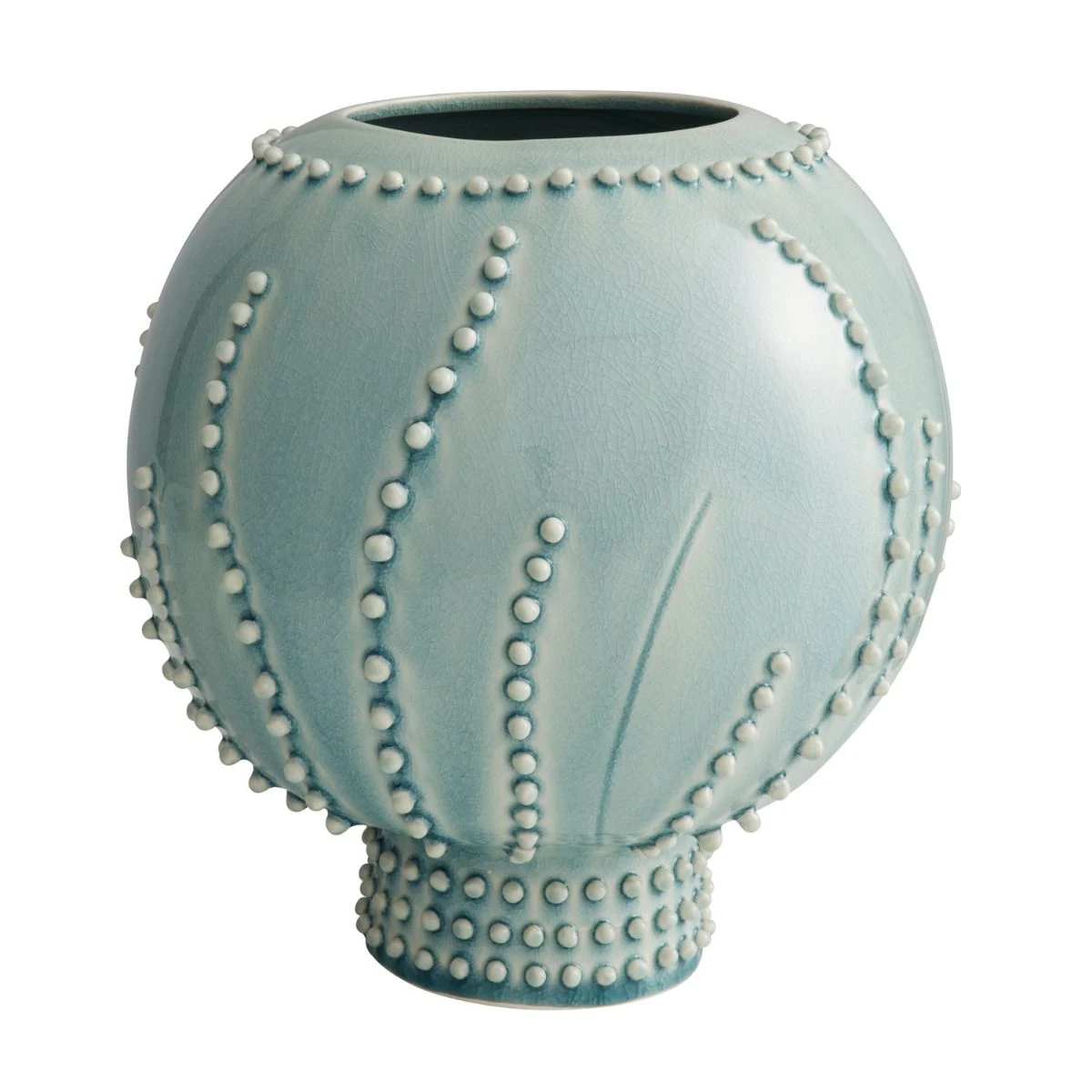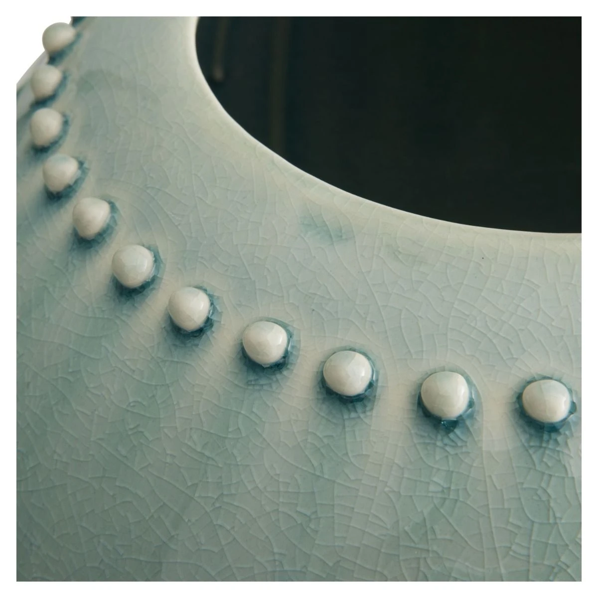 A Ceramic Vase In A Celedon Finish, Cascading In Dotted Tendrils For A Unique Design. Pair With Its Smaller Version For An Awe-inspiring Look. Finish Will Vary.