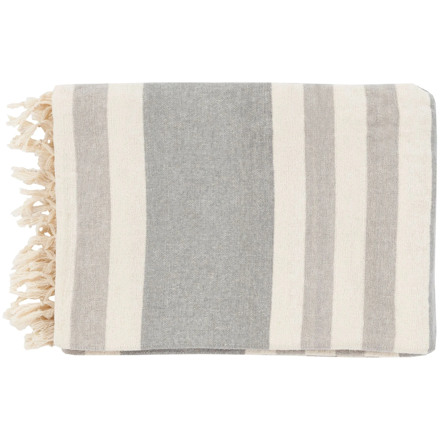 Smooth stripes display themselves perfectly along this exquisite throw. Featuring a series of varied stripe designs in ivory and ash gray coloring, this piece will create a sense of classic charm in any space. Upholding elements of comfort while maintaining a sense of striking style, this piece forges an impeccable display of artistry and fashionable design.
