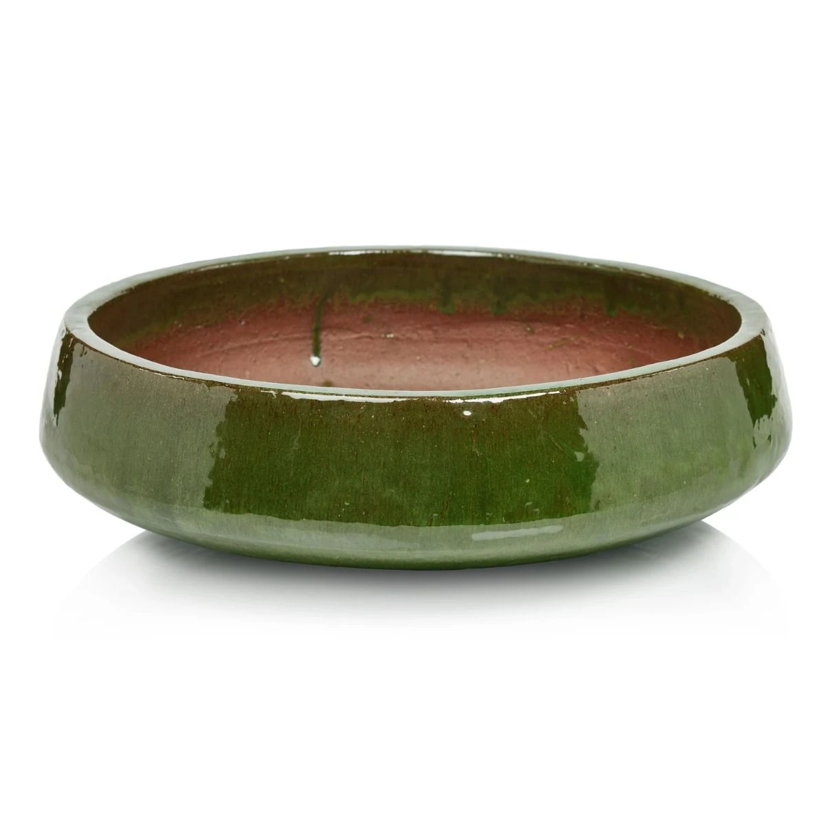 This round green glazed stoneware planter is a beautiful addition to your home for any setting that will last for a long time. Perfect for succulents and bonsais for either indoor or outdoor display.